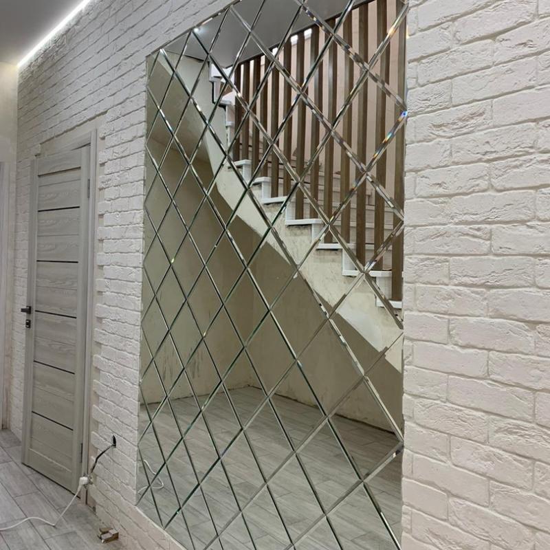 Использована серебристая квадратная зеркальная плитка 18х18.